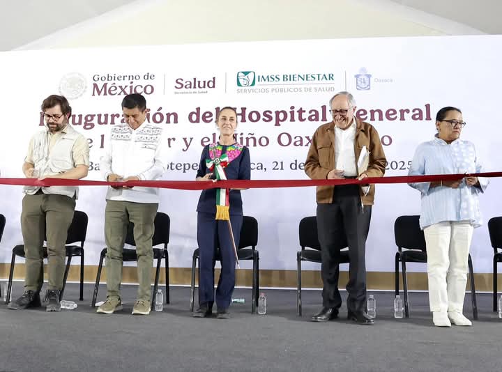 San Bartolo Coyotepec, Oax.- La presidenta de México Claudia Sheinbaum Pardo inauguró de manera simultánea el Hospital General de la Mujer y el Niño Oaxaqueño y el Centro de Salud de Servicios Ampliados (CESSA) de Ixtlán de Juárez, ambos del IMSS Bienestar.