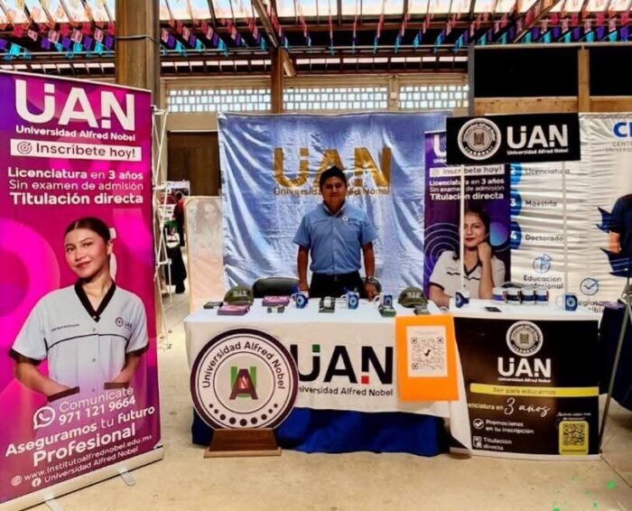 Oaxaca de Juárez, Oax.- La Universidad Alfred Nobel (UAN) participa en la Feria Vocacional ORIENTA-T 2026, inaugurada este miércoles por el Instituto Estatal de Educación Pública de Oaxaca (IEEPO) en el Parque Primavera, con el lema «¡Tu elección hoy, tu futuro mañana!».